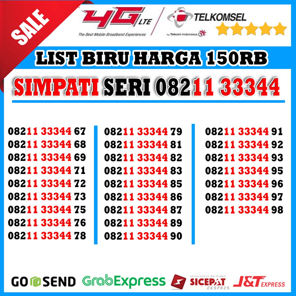 Perdana Nomor Cantik Simpati Seri 08211 33345 Xx Telkomsel 4g Lte Berlaku Nasional Shopee Indonesia