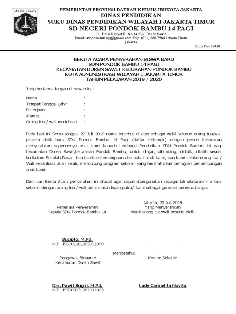 Berita Acara Serah Terima Siswa Baru