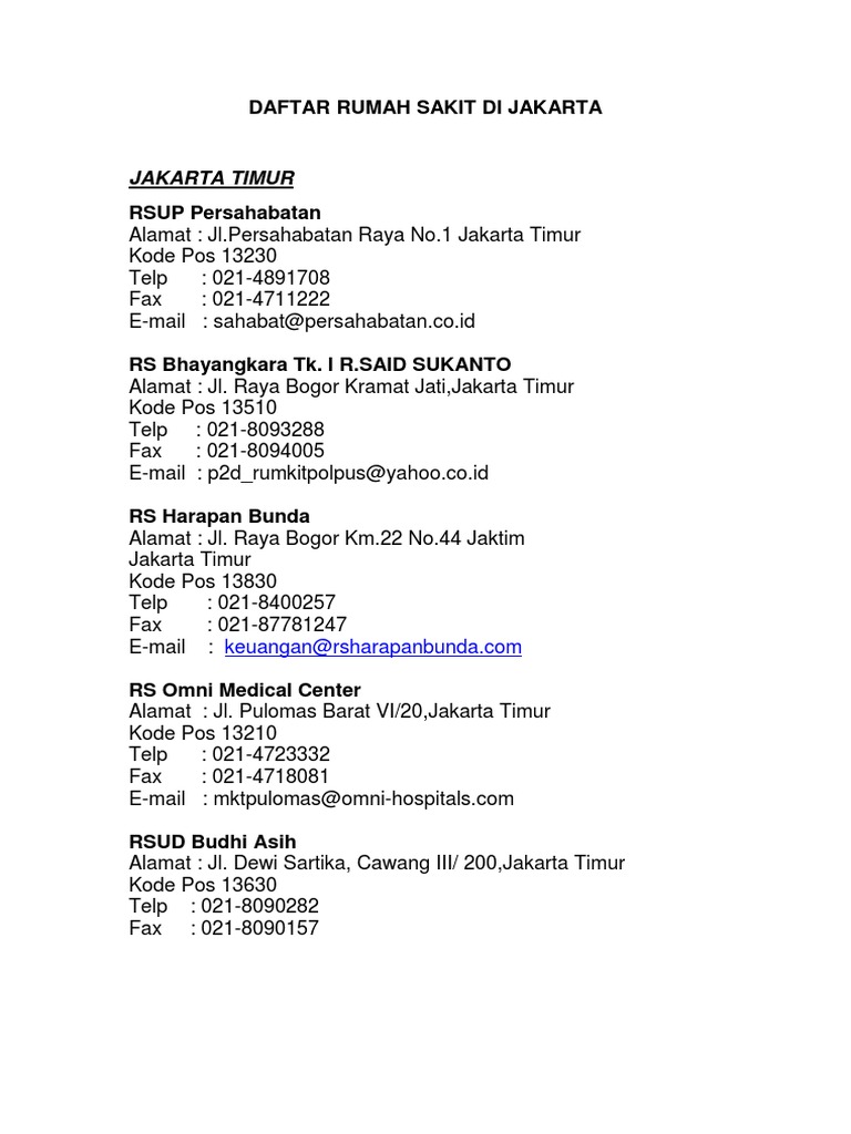 Daftar Rumah Sakit Di Jakarta