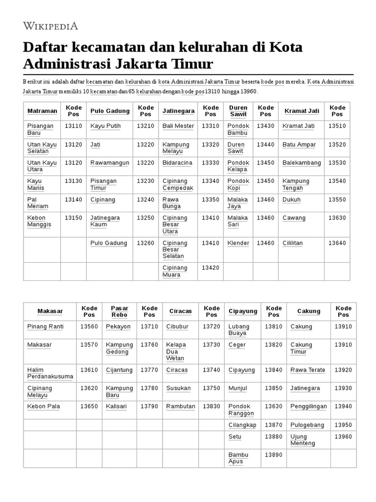 Daftar Kodepos Jakarta Timur Dki Jakarta Indonesia