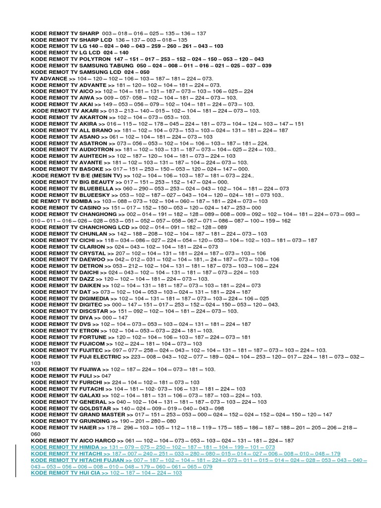 Kumpulan Kode Remote Tv Universal Semua Merk Televisi
