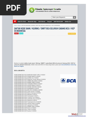 Daftar Kode Bank Kliring Swift Bca Seluruh Cabang Kcu Kcp Di Indonesia