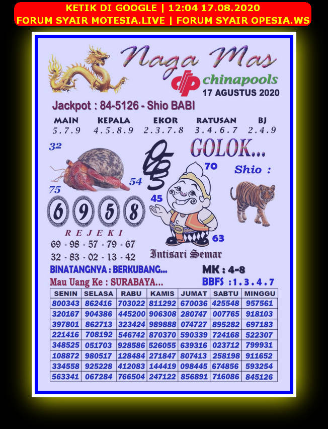 Syair Hk Senin 17 Agustus 2020 Forum Kode Syair Toto