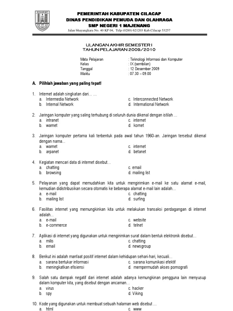 Soal Tik Smp Semester I Kelas Ix 2009