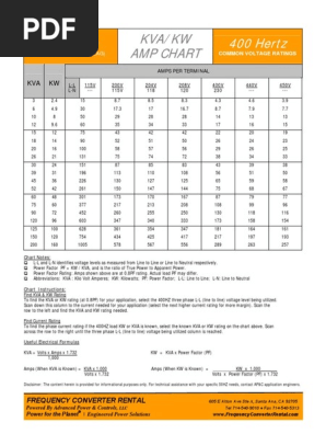 3 Phase Kva Kw Amp Chart 50 Hertz