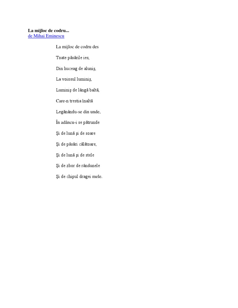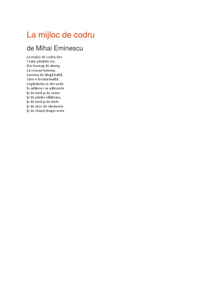 La Mijloc De Codru De Mihai Eminescu Anideșcoală Ro