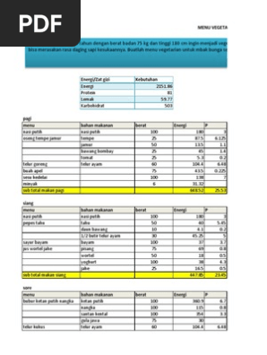 Menu Vegetarian Lacto Ovo