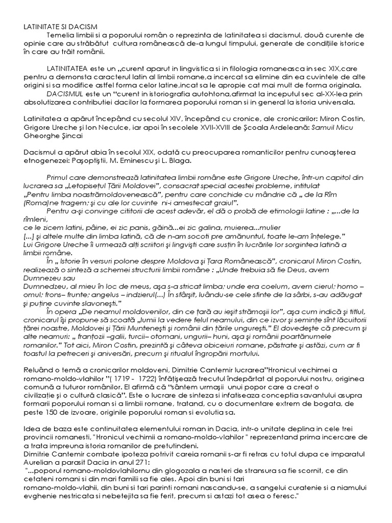 Latinitate Si Dacism Referat