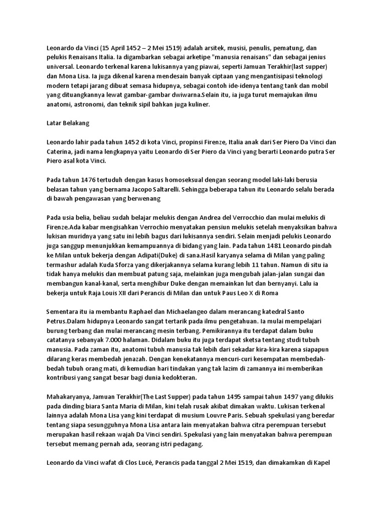 Obsahuje popis jeho života a popis jeho děl mona lisa bitva u angiari poslední večeře. 33 3 21 3 cm. Dubna 1452 anchiano u vinci 2. Května 1519 v clouxu ve francii.