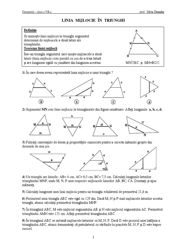 Linia Mijlocie In Triunghi Anideșcoală Ro