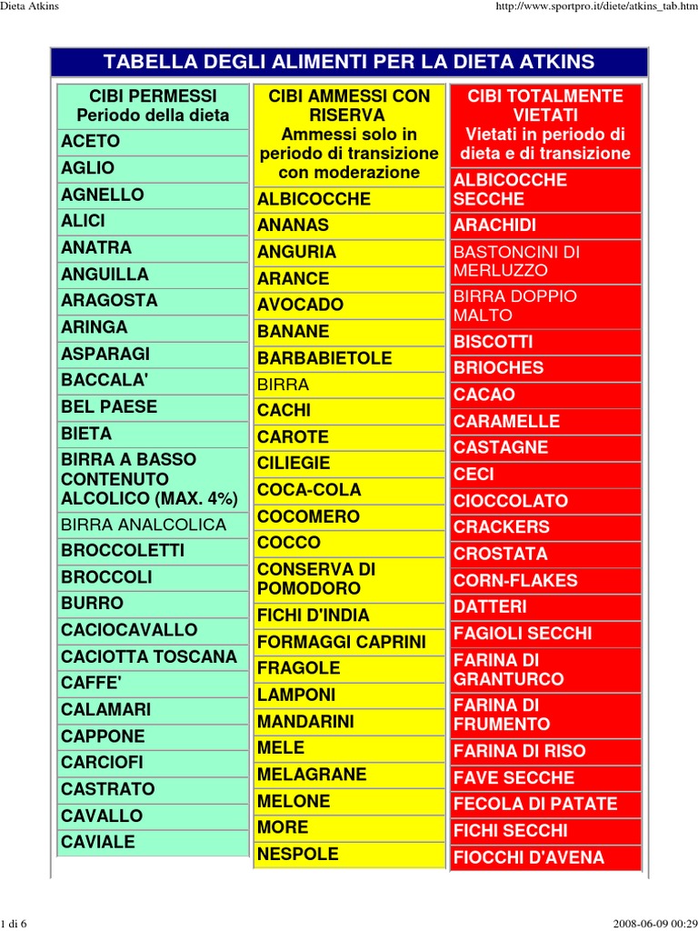 Dieta Atkins Tabella Degli Alimenti Per La Dieta Atkins