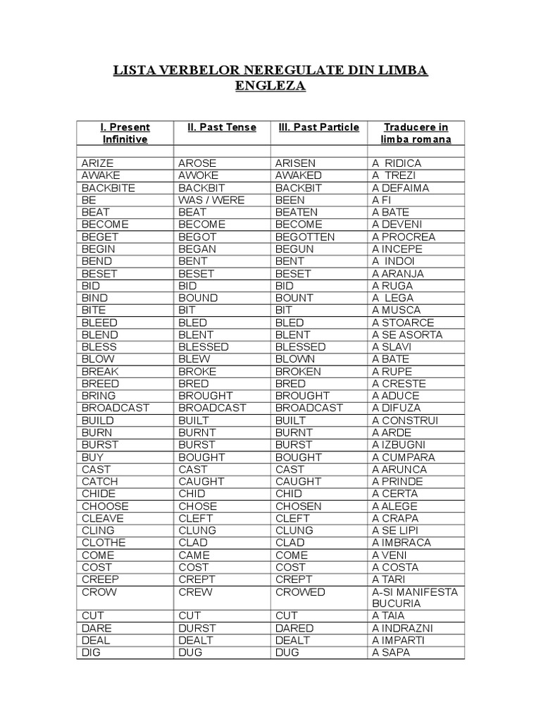 Doc Lista Verbelor Neregulate In Limba Engleza Hn Alexa Academia Edu