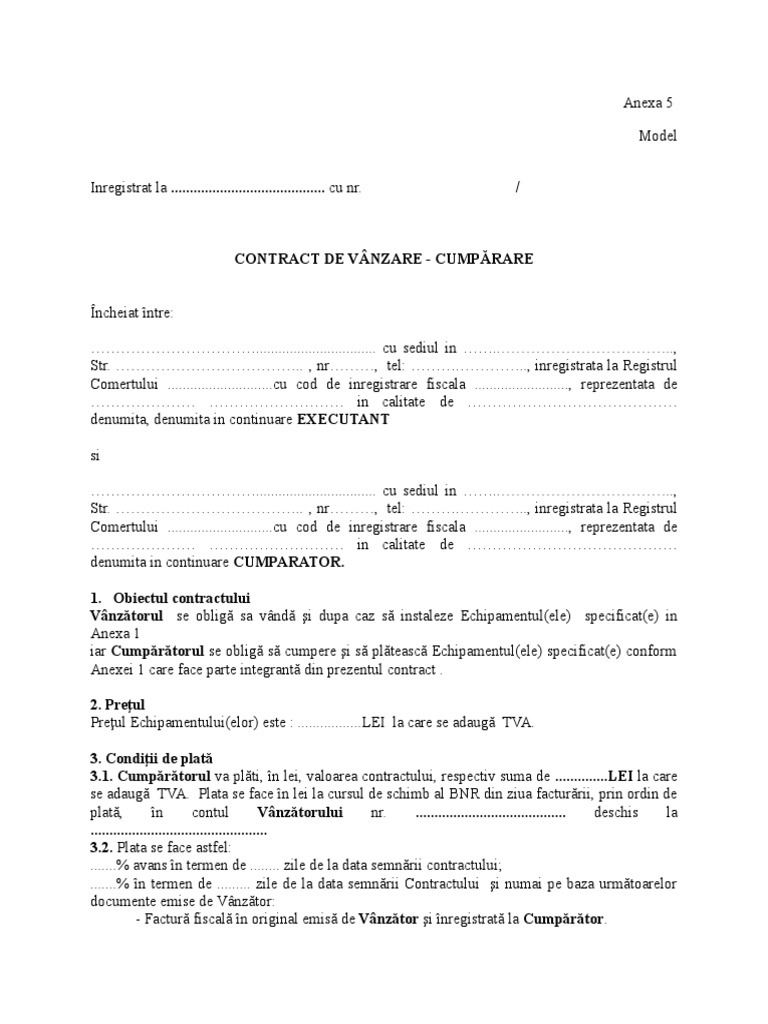 Model Contract Vanzare Cumparare De Mana