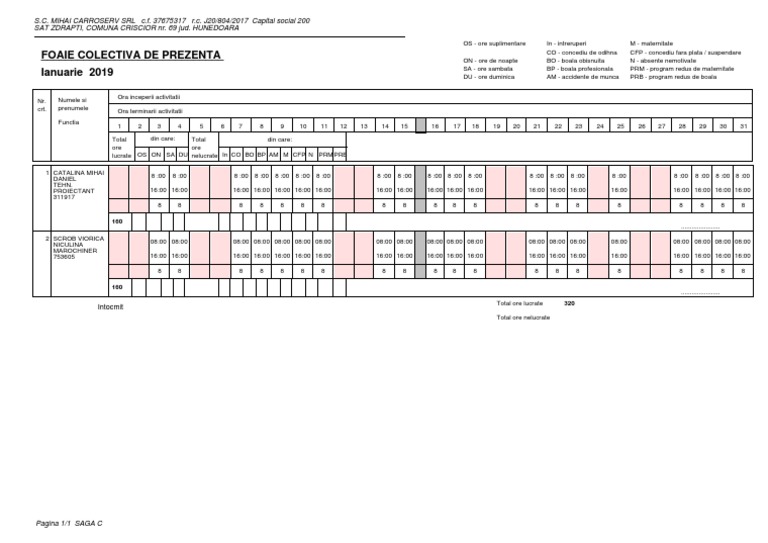 Model Pontaj Foaie Prezenta Vatamanu Paula Academia Edu