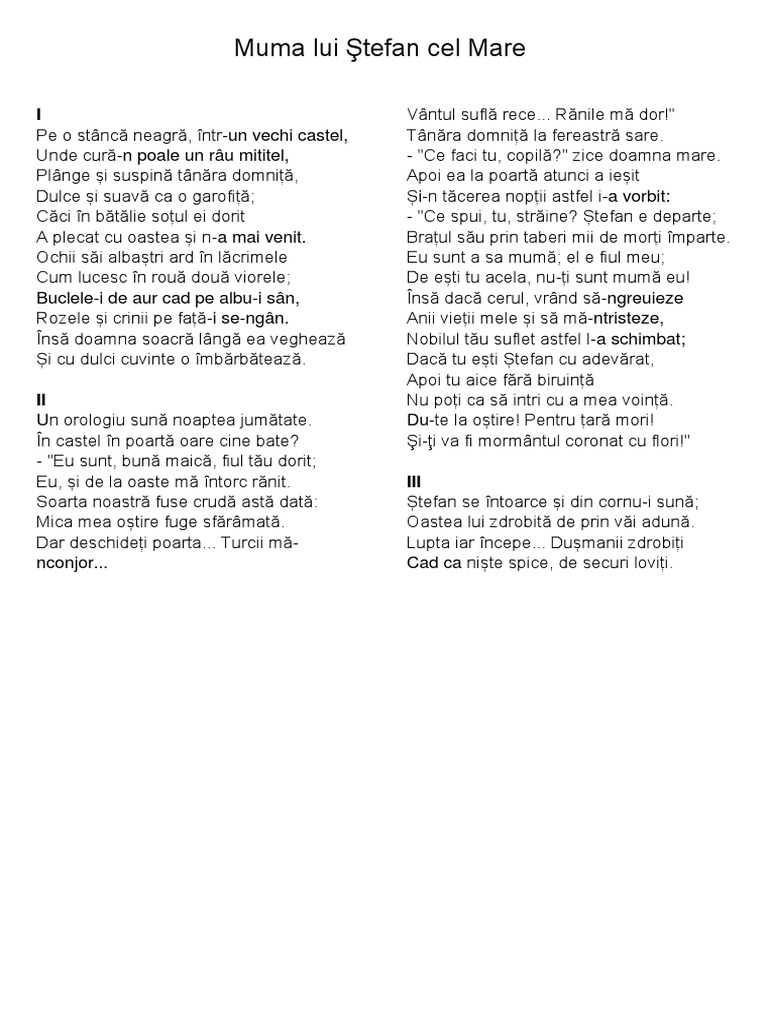 Poezia Zilei Muma Lui Stefan Cel Mare Dimitrie Bolintineanu